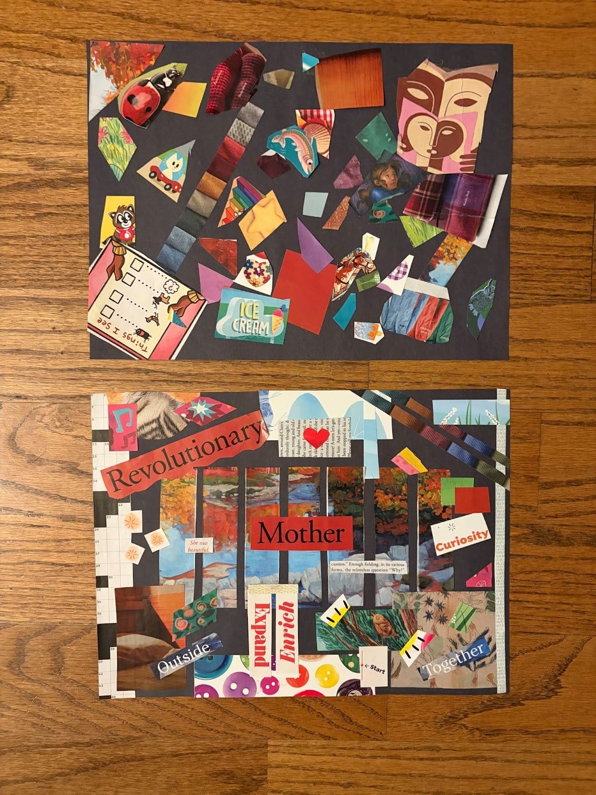 At some point, she mentioned making vision boards with her husband and young children. They, too, worked with a limited supply of magazines. We laughed at the coincidence and talked about the various things our family members had cut out. The next day, I sent her a photo of the collages my daughter and I had made.